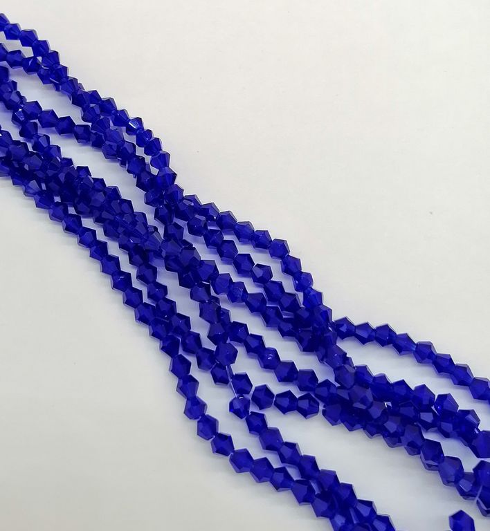 Бусины стеклянные граненые "Биконус", 3 мм, цвет синий прозрачный (303)