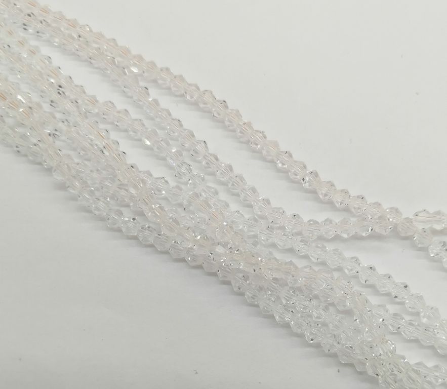 Бусины стеклянные граненые "Биконус", 4 мм, цвет прозрачный (301)