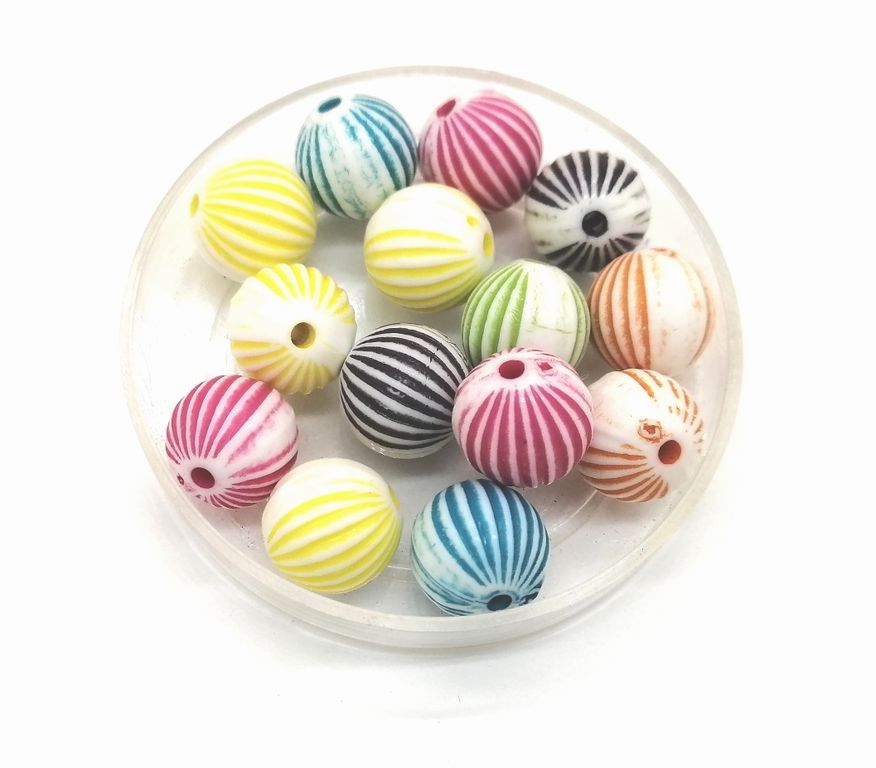 Бусины пластиковые фигурные, 10 мм полосатый шар микс