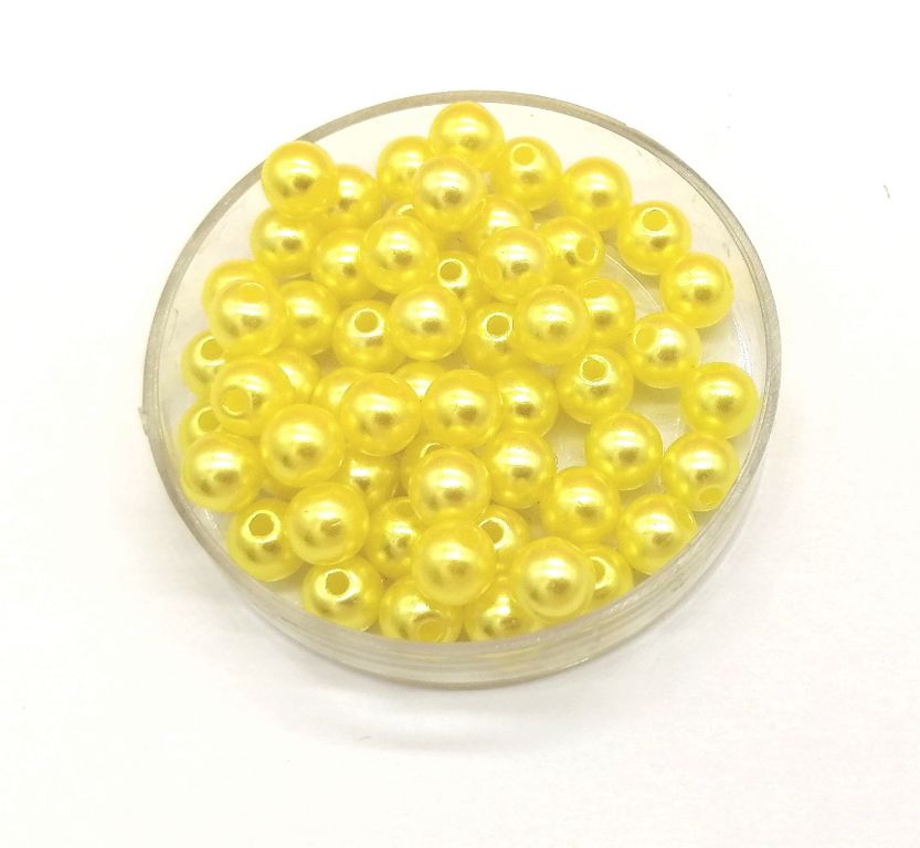 Бусины пластиковые под жемчуг 6 мм, цвет желтый