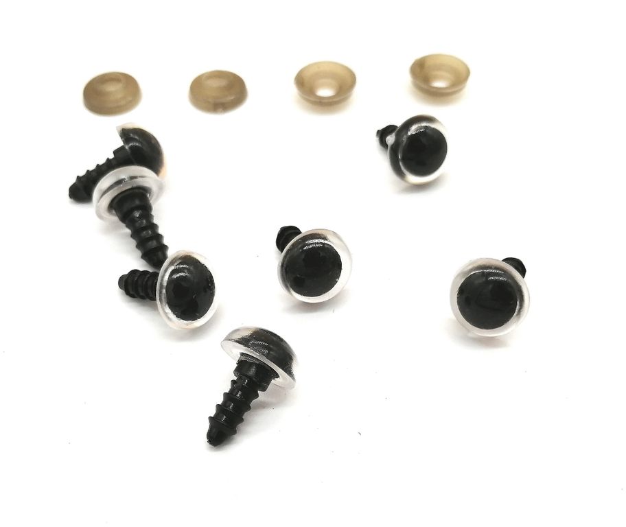 Глаза винтовые цветные используются для игрушек, за счет надежного фиксирования этих глазоук с помошью заглушек их еще назвыают безопасными. Большой ассортимент в наличии.