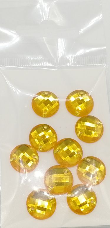 Стразы акриловые пришивные 12 мм, цвет золотой 11