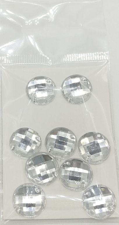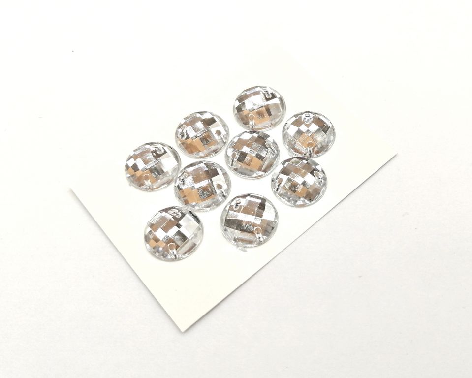 Стразы акриловые пришивные 14 мм, цвет белый 01