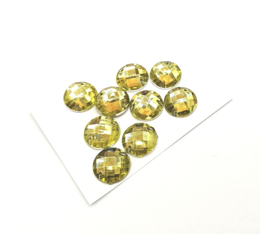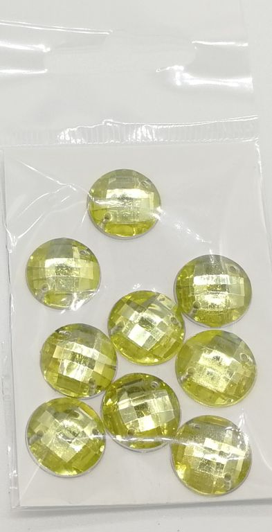 Стразы акриловые пришивные 14 мм, цвет лимонный 12