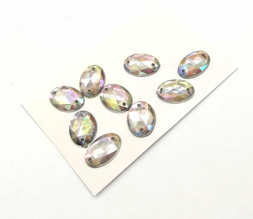 Стразы акриловые пришивные овал 10*14 мм, цвет АВ 17