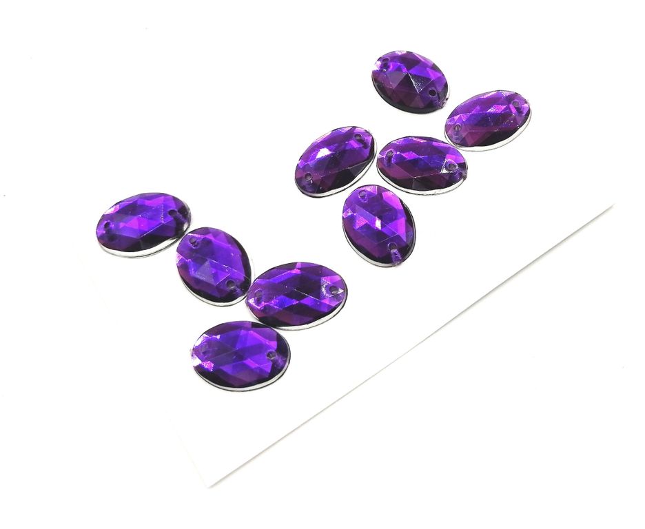 Стразы акриловые пришивные овал 10*14 мм, цвет фиолетовый 04