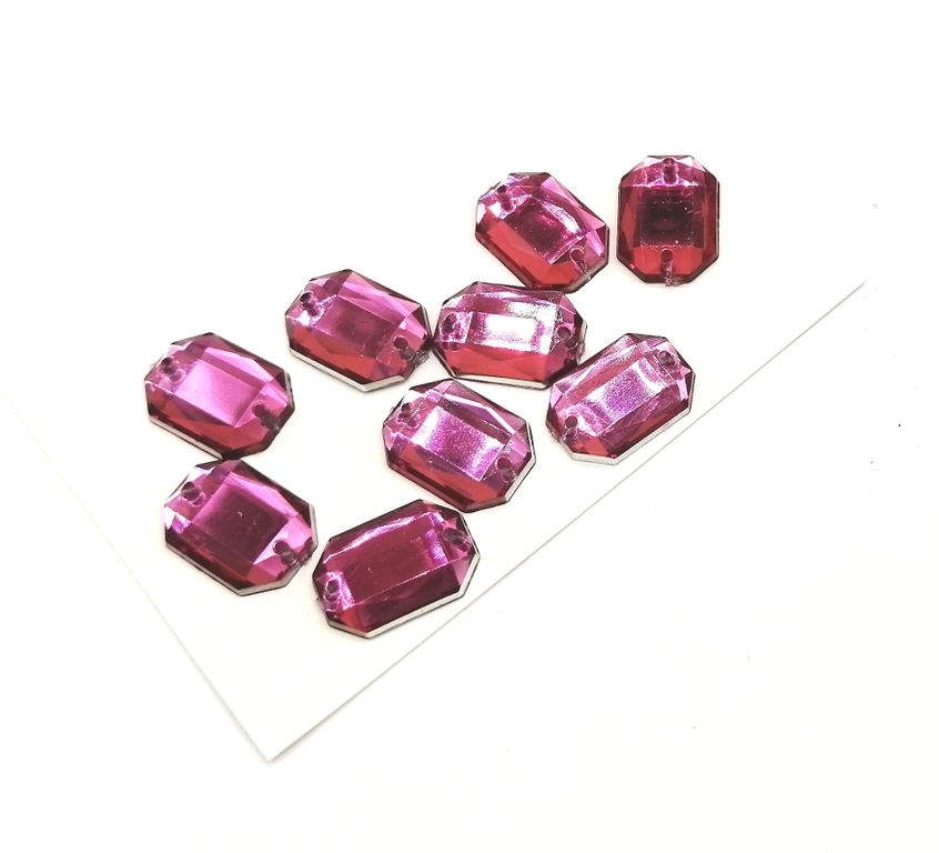 Стразы акриловые пришивные прямоугольник 10*14 мм, цвет фуксия 02