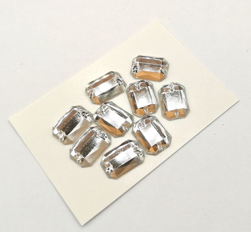 Стразы акриловые пришивные прямоугольник 10*14 мм, цвет белый 01
