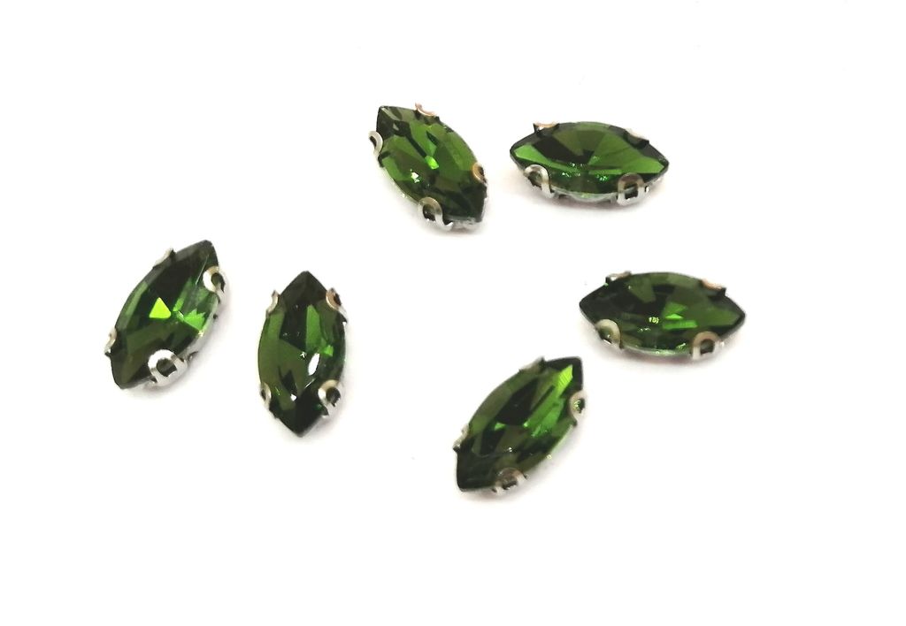 Стразы стеклянные пришивные в цапах, 6х12 мм цвет зеленый