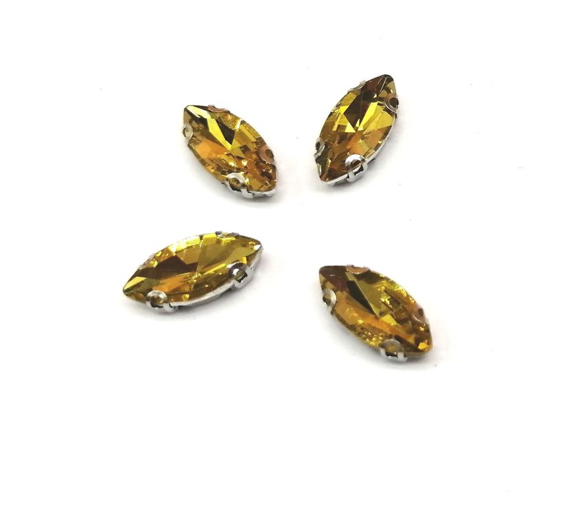 Стразы стеклянные пришивные в цапах, 7*15 мм цвет золото